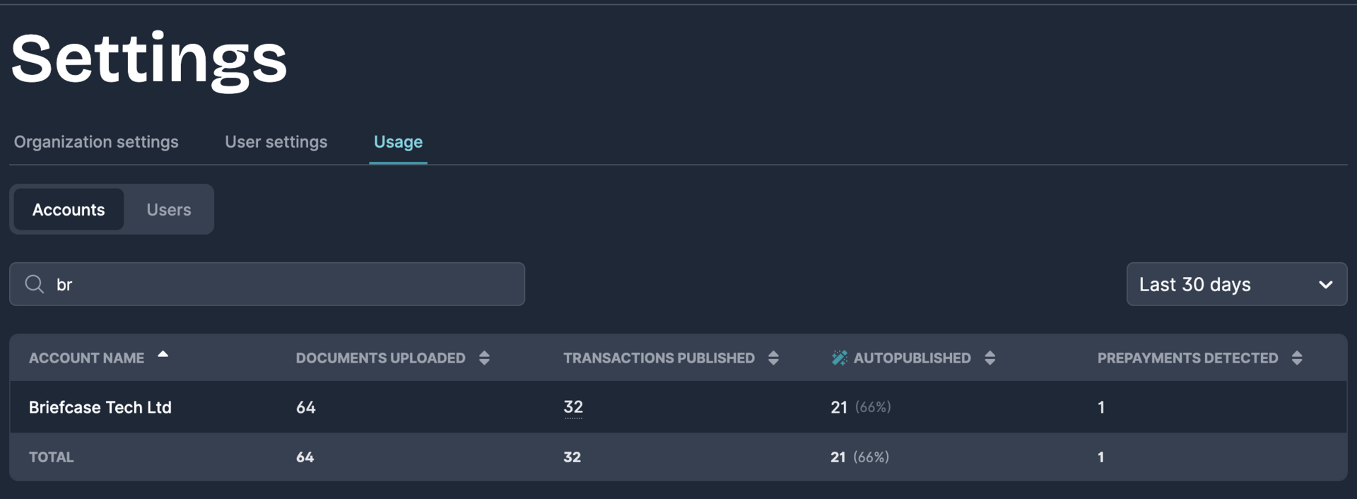 We've launched the Usage Dashboard to give you clear insights into activity across clients and users. To access it, navigate to Settings (cog icon in the top right) and select the Usage tab. Filter by business, or switch to the Users view and filter by email address for more granular details.