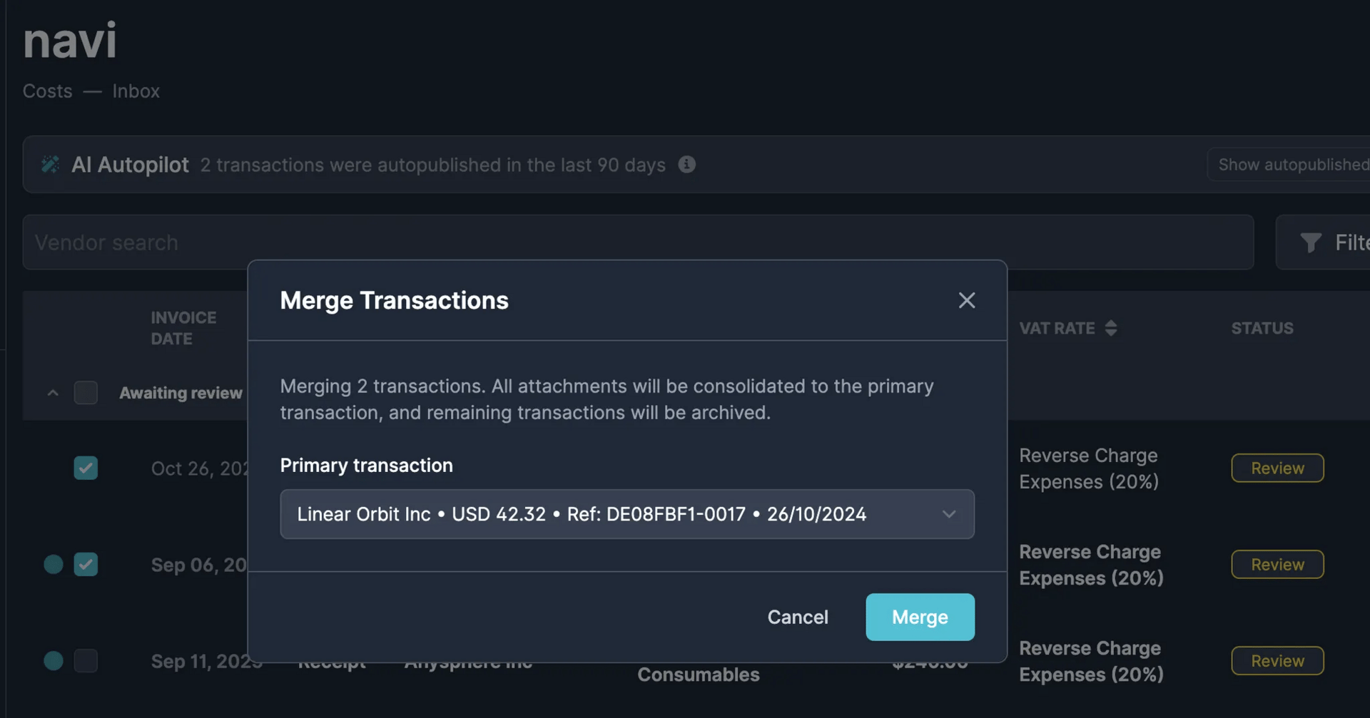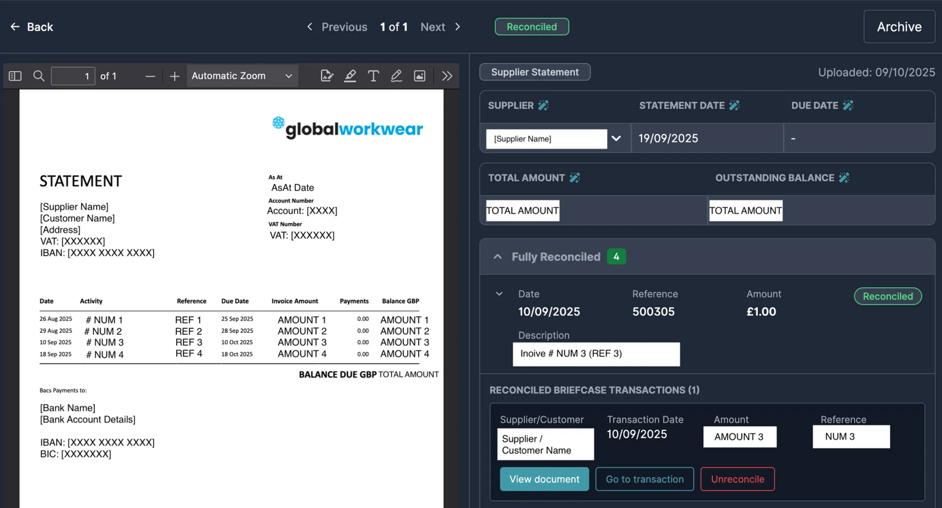 Briefcase now automatically reconciles supplier statements with your transactions.