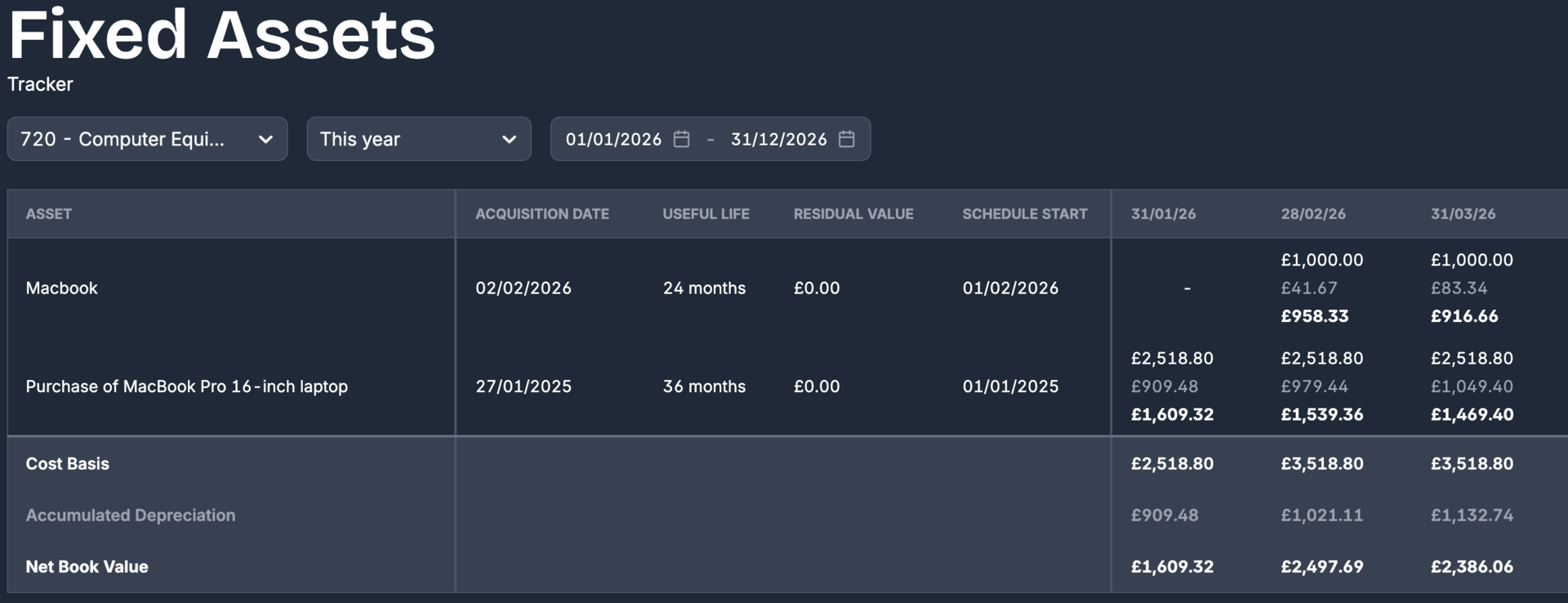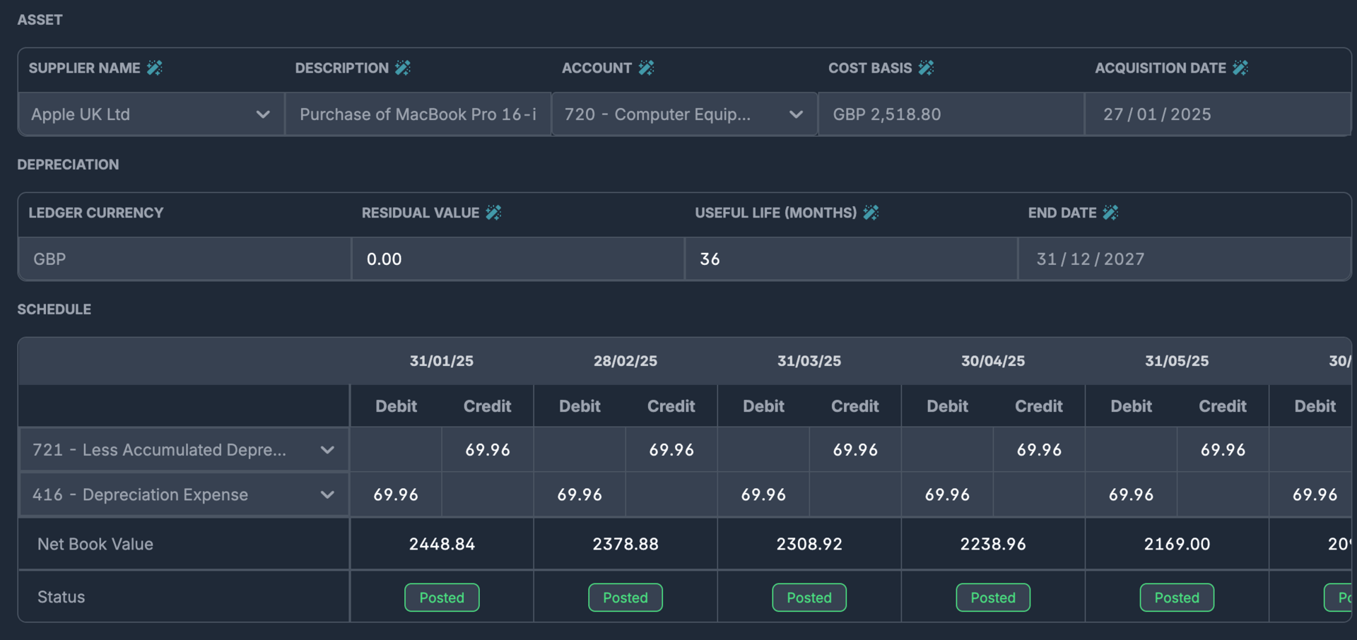 Briefcase will automatically create a depreciation schedule for you. Once published, this will automatically generate journals in your connected Xero or QuickBooks account.
